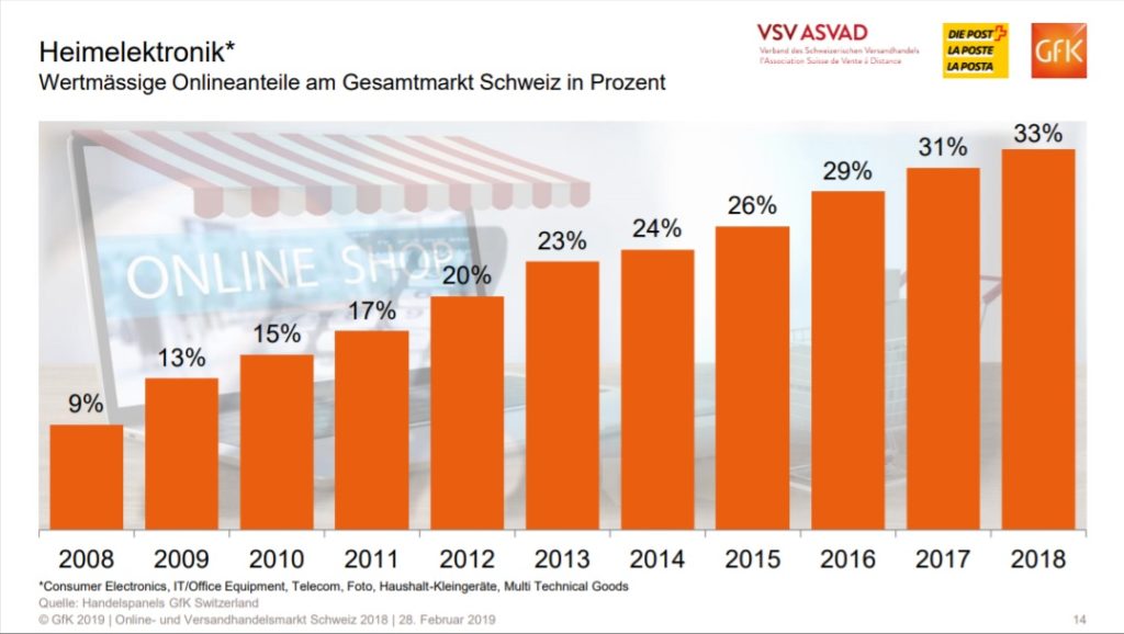 - Jeder dritte Umsatzfranken im Bereich Heimelektronik wird online realisiert