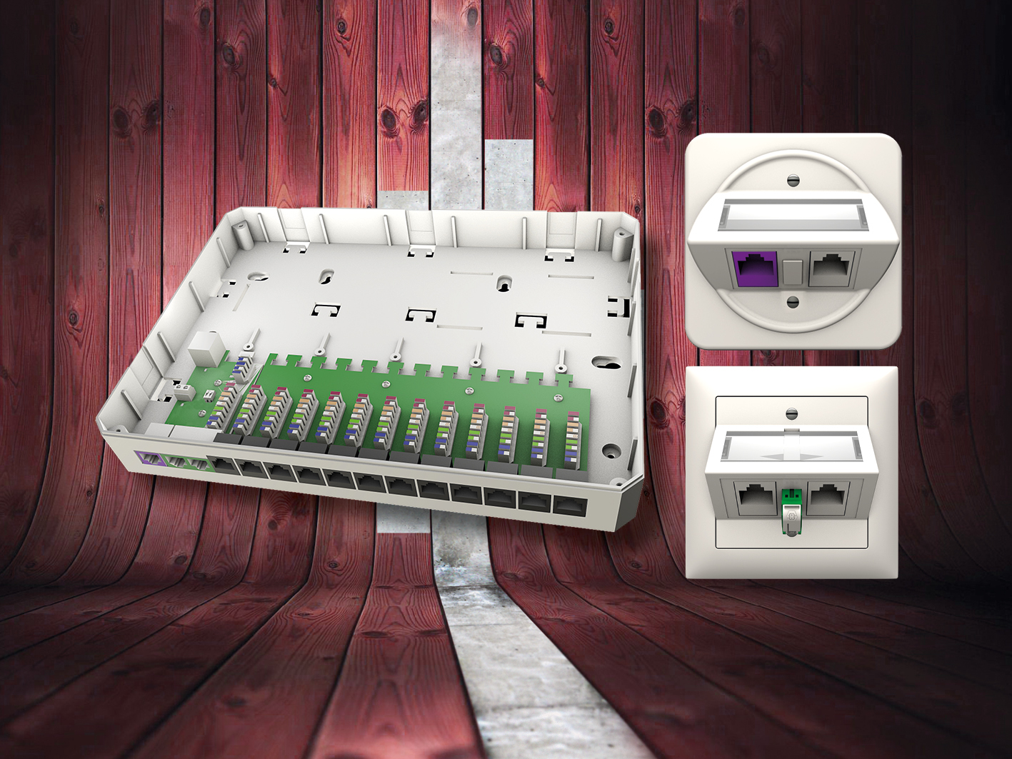Für eine optimale WiFi- und DECT-Abdeckung im Wohnbereich wird der Swisscom-Router idealerweise im Wohnzimmer installiert. Dazu bietet Ceconet eine elegante Gesamtlösung an. Sie besteht einerseits aus einer hybriden Anschlussdose der Grösse 1 für die Aufnahme eines «Clik-LC Fiber Adapter» von Huber+Suhner sowie von zwei RJ45-CAT6-Keystone-Buchsen – andererseits aus dem CECOFLEX Sternverteiler zur Verbindung der Schnittstellen von Router und Anschlussdose.