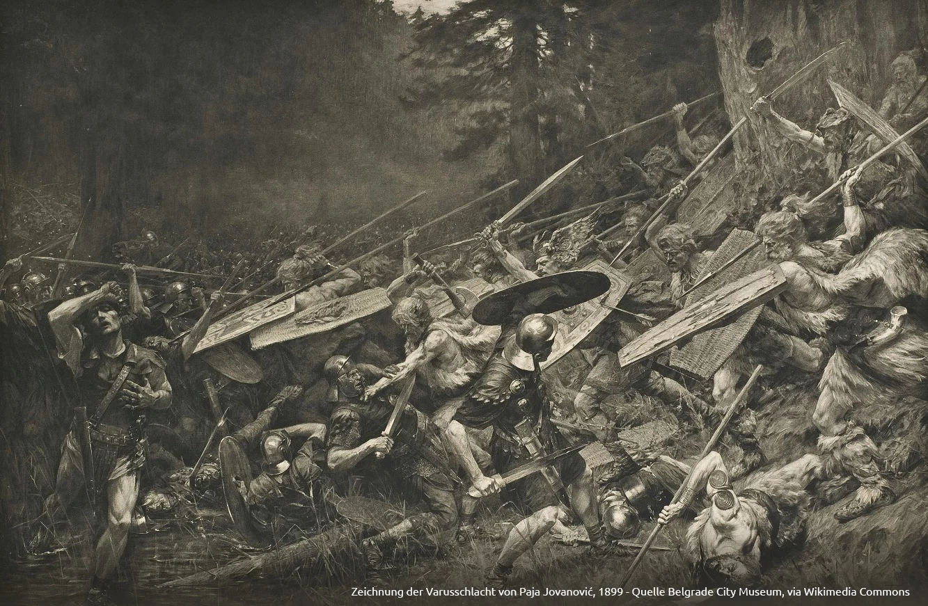 Wie in der Varusschlacht (grosses Bild), als römische Legionen im germanischen Wald von einem unterschätzten, lernfähigen Gegner vernichtet wurden, zeigt sich auch im Cyberraum: formale Überlegenheit schützt nicht vor strategischer Überrumpelung. Unternehmen müssen damit rechnen, dass KI-gestützte Angreifer nicht nur effizienter, sondern adaptiver und langfristig immer überlegener operieren.