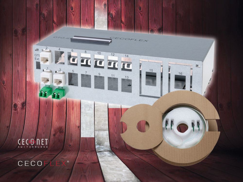 Die Kabel, erhältlich in Längen von 10 bis 150 Meter, werden auf einer Bobine geliefert und sind leicht abzurollen. Patchpanel, Inhousekabel und Anschlussdosen aus dem CECOFLEX-Programm bilden zusammen eine komplette, einfach nutzbare Netzwerk- und Anschlusslösung für Glasfaserinstallatione