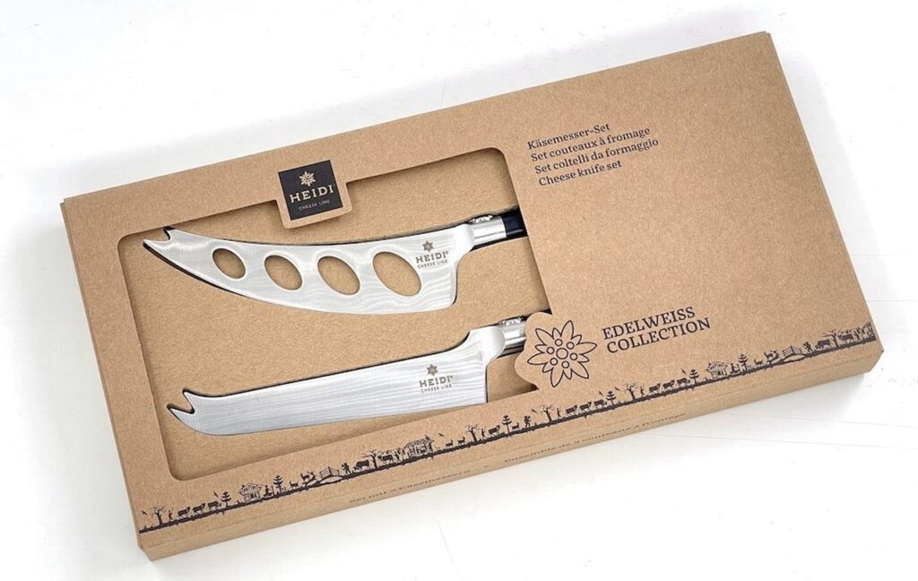 Geschäftsleiter Alfrede Ralda: „Wir strebten schon länger eine elegante und praktische Kollektion für Käse- und Alpenliebhaber an, welche Tisch und Käseplatte verschönert, jedoch gleichzeitig intensivem Gebrauch standhält.“ Ein Versprechen, das mit den Messern für jeden Anwendungsbereich eingehalten wird. Zwar bilden vielseitige Käsesorten die Spezialität der Heidi Cheese Line, doch sollen auch Fleisch- und Wurstliebhaber nicht zu kurz kommen. Weshalb die Edelweiss-Kollektion aus fünf Käse- und einem Fleisch- und Wurstmesser besteht.