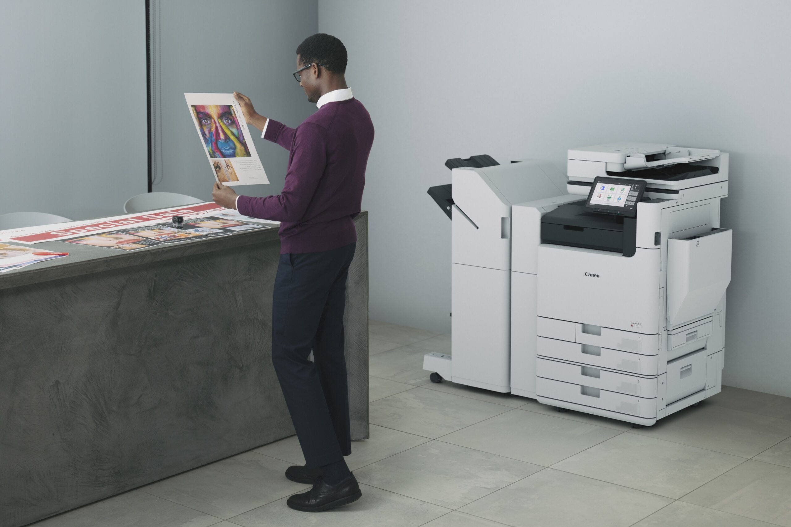 Das Büro-Multifunktionssystem imageFORCE C7165 ist das erste seiner Art und ergänzt das bestehende Office-Portfolio, künstliche Intelligenz für maschinelles Lernen inklusive. Auf ganz besondere Weise steht die neue imageFORCE für das Werteversprechen Canons, Excellence in Quality zu liefern. Auf ganz besondere Weise steht die neue imageFORCE für das Werteversprechen Canons, Excellence in Quality zu liefern. Der Bedarf, neben der klassischen Bürokommunikation auch hochwertige Marketingmaterialien zu produzieren, war ausschlaggebend für die Entwicklung des Systems. Produktivität, Ressourcenplanung, Kostensenkung standen im Fokus. Mit der imageFORCE C7165 lässt sich professioneller Schriftverkehr genauso produzieren wie hochauflösende Bilder, Broschüren und andere kreative Anwendungen. Ein weiterer Pluspunkt: Die imageFORCE C7165 besteht zu 30 Prozent aus recycelten Kunststoffen und verfügt über eine innovative Technologie, mit der Informationen zum Papierverbrauch und zum Energieverbrauch bereitgestellt werden.