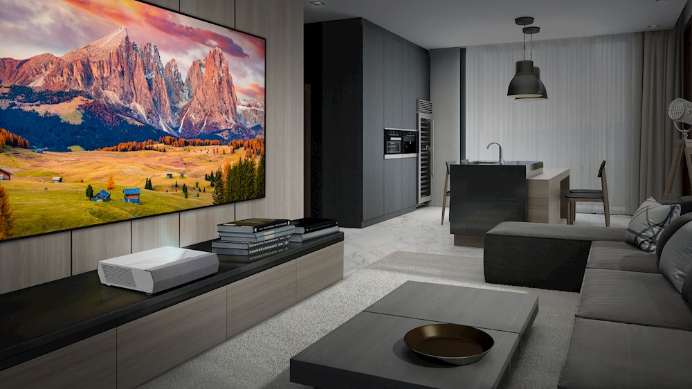 Ausgestattet mit einer integrierten NuForce Soundbar mit Dolby Digital-Unterstützung und den neuesten Smart Home Features wie Sprachsteuerung, IFTTT und einem 4K HDR-kompatiblen Mediaplayer bietet dieses Unterhaltungssystem mit modernster Lasertechnologie eine präzise, naturgetreue Farbwiedergabe und einen unglaublichen Sound – perfekt für das ultimative Grossbild-Erlebnis zu Hause.