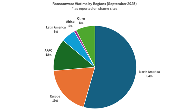 Während die Schweiz kurzfristig Entlastung verspürt, verschärft sich weltweit die Lage bei Ransomware-Attacken. Check Point registrierte im September 562 öffentlich gemeldete Ransomware-Vorfälle, ein Anstieg von 46 Prozent gegenüber dem Vorjahresmonat. Mehr als die Hälfte der Fälle entfiel auf Nordamerika (52 Prozent), gefolgt von Europa (19 Prozent).