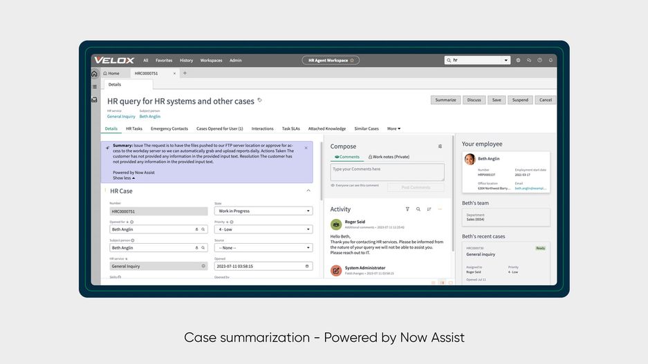 • Now Assist for HR hilft HR-Führungskräften, die Produktivität und betriebliche Effizienz zu steigern, überflüssige, manuelle Aufgaben für HR-Teams zu reduzieren und Mitarbeiteranfragen schneller zu beantworten.