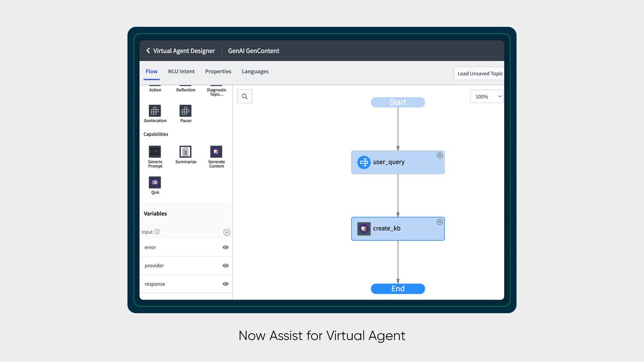 • Now Assist for Creator unterstützt Entwicklungsteams bei der schnelleren Erstellung und Skalierung von Anwendungen auf der Now Platform. Die neue Funktion trägt dank Text-to-Code dazu bei, in allen Abteilungen des Unternehmens nahtlose Coding-Erlebnisse zu schaffen, die eine schnelle Entwicklung und höhere Produktivität ermöglichen.