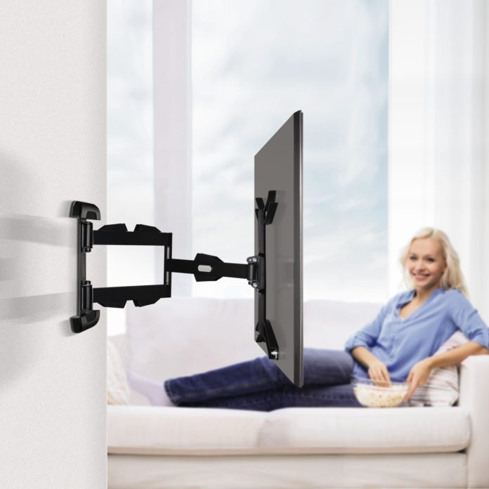 Ein grosser Fernseher macht sich vor allem in einem entsprechend grosszügigen Raum gut. Schwierig wird es allerdings, wenn das Zimmer in unterschiedliche Bereiche aufgeteilt ist und man von überall einen optimalen Blick auf das TV-Gerät haben will. Hama bietet mit dem Modell „Fullmotion ultralang“ eine vollbewegliche TV-Wandhalterung mit extralangem Auszug, die dieses Problem löst.