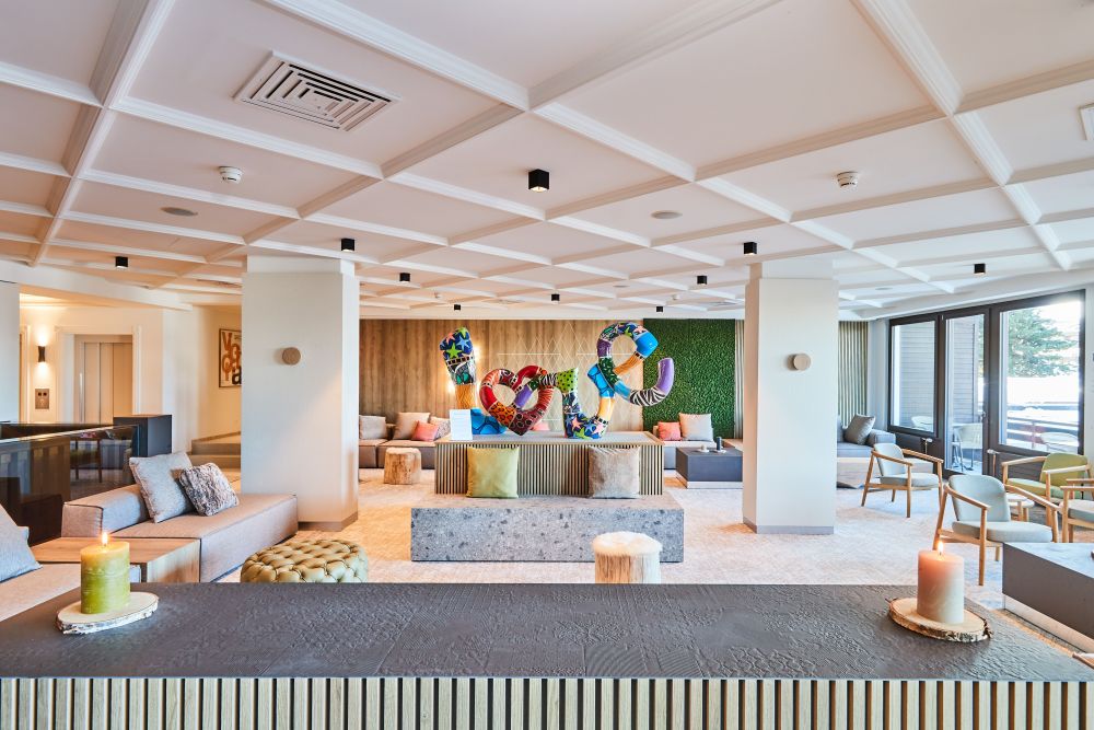 Das Resultat bietet eine von der natürlichen Umgebung inspirierte Ausstattung, bei der nachhaltige, lokale Materialien den verantwortungsvollen Ansatz widerspiegeln. Bereits bei Ankunft sticht die mit künstlichen Pflanzenwänden geschmückte Lobby ins Auge. Die Gäste fühlen sich in einer hellen, aufgeräumten Umgebung handgefertigter Sitzbänke und Stühle ebenso aus Holz der umliegenden Wälder, Steintischen und farbenfroh zeitgenössischen Skulpturen wohl.