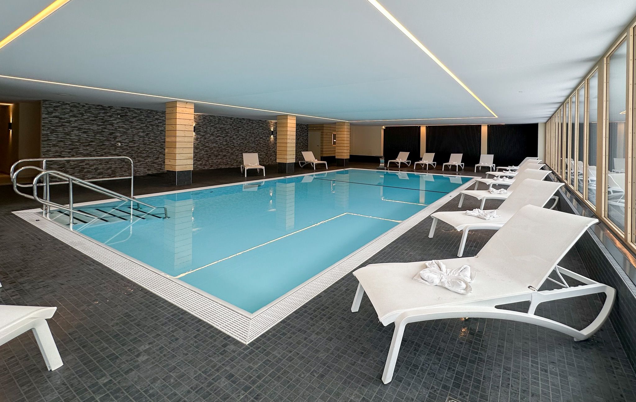 Der 300 m2 grosse Wellnessbereich verfügt über ein beheiztes Hallenbad, eine Sauna und einen Fitnessraum mit Rudergeräten, Laufband und Hantelbank. Eltern ermöglicht der Alpiklub dank seiner Kinderprogramme eine entspannte Auszeit in der alpinen Höhe.